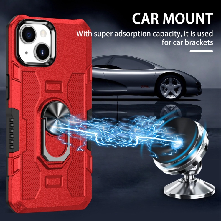 Funda Armor Hybrid con Ring Holder para iPhone 15 (Rojo)