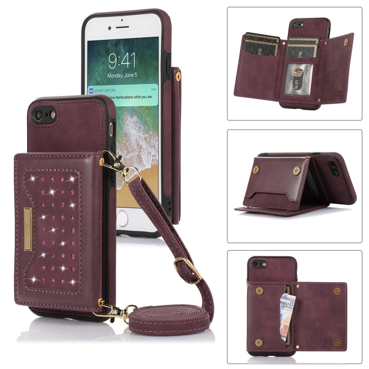 Estuche de Teléfono Cuero Rfid para iPhone 6/6S Tres Pliegues con Cordón (Rojo)