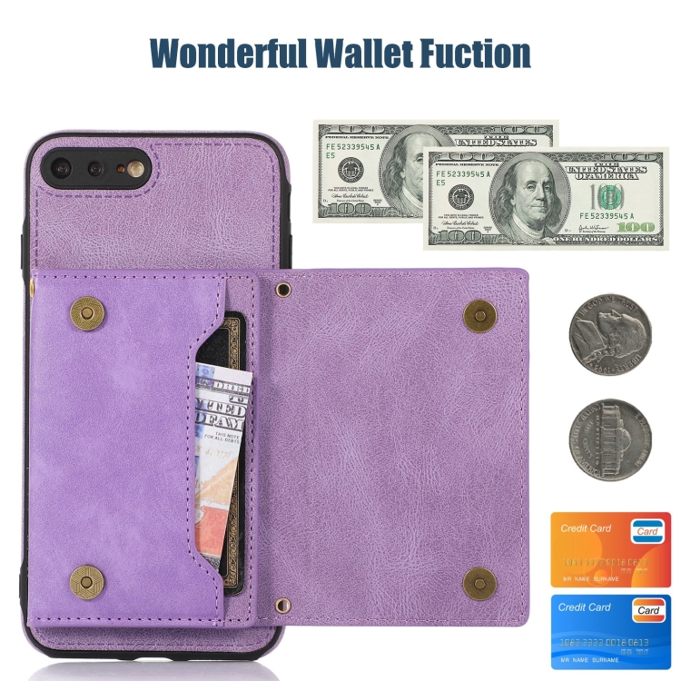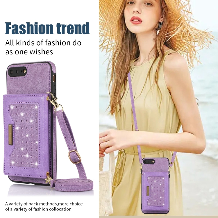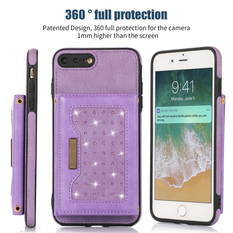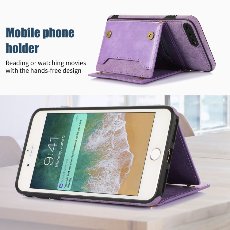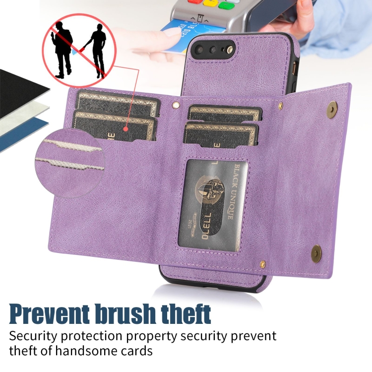 Estuche de Teléfono Cuero Rfid para iPhone 7 Plus 8 Plus Tres Pliegues con Cordón (Púrpura)