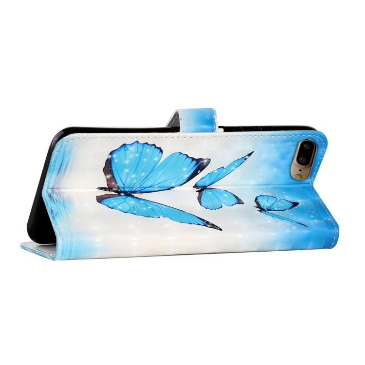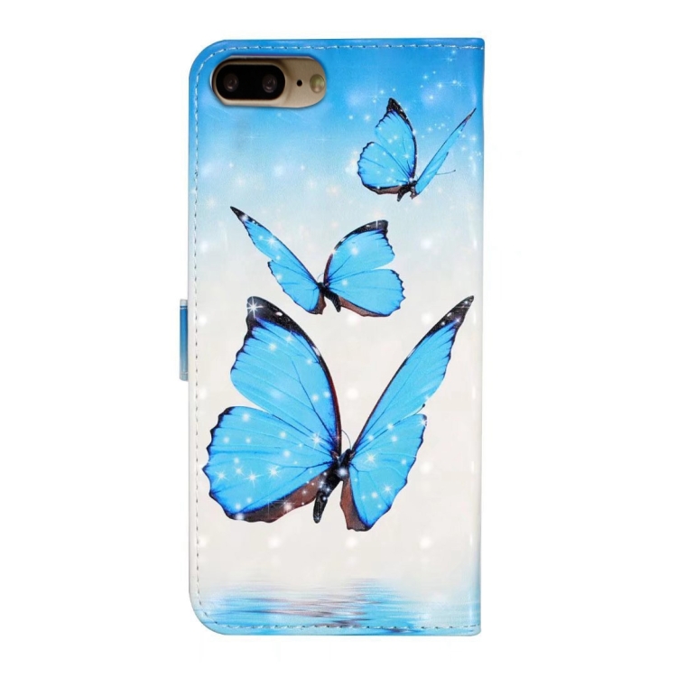Funda de Cuero iPhone 7 Plus/8 Plus Dibujo 3D en Relieve al Óleo (3 Mariposas)