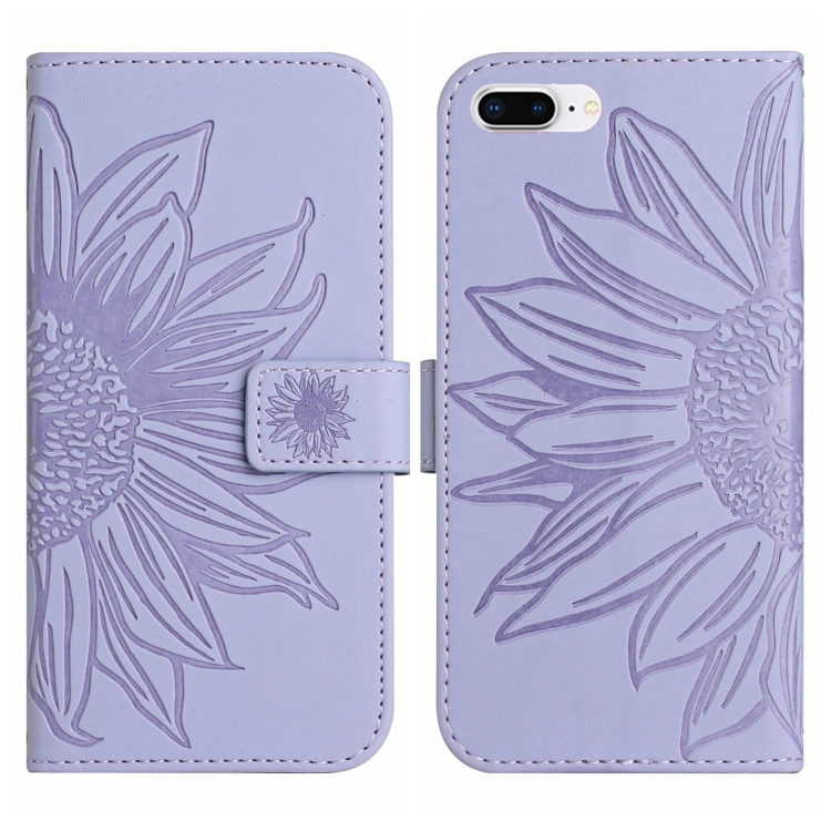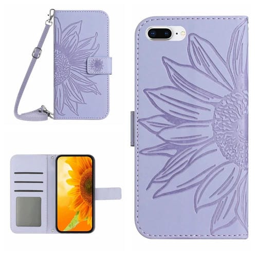 Funda de Cuero para iPhone 7 Plus y 8 Plus Skin Feel Sun Flower Pattern con Cordón (Púrpura)