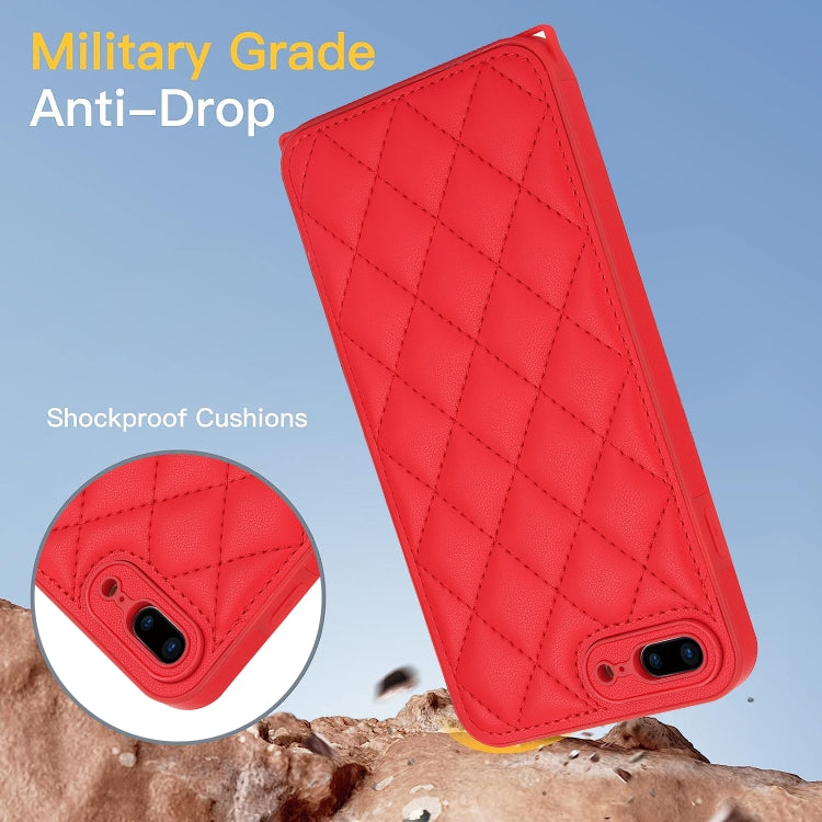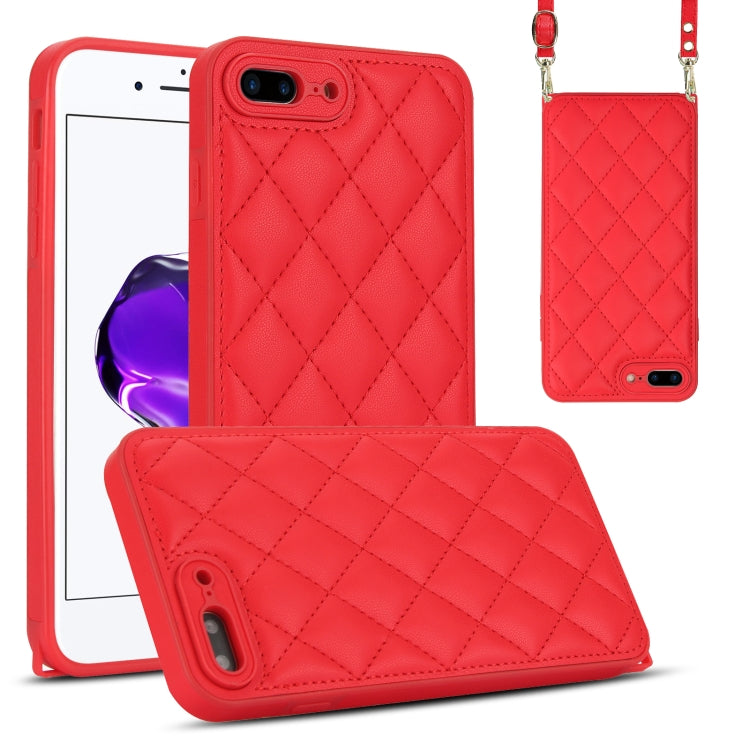 Funda para teléfono iPhone 8 Plus/7 Plus con textura rómbica y cordón doble (Rojo)