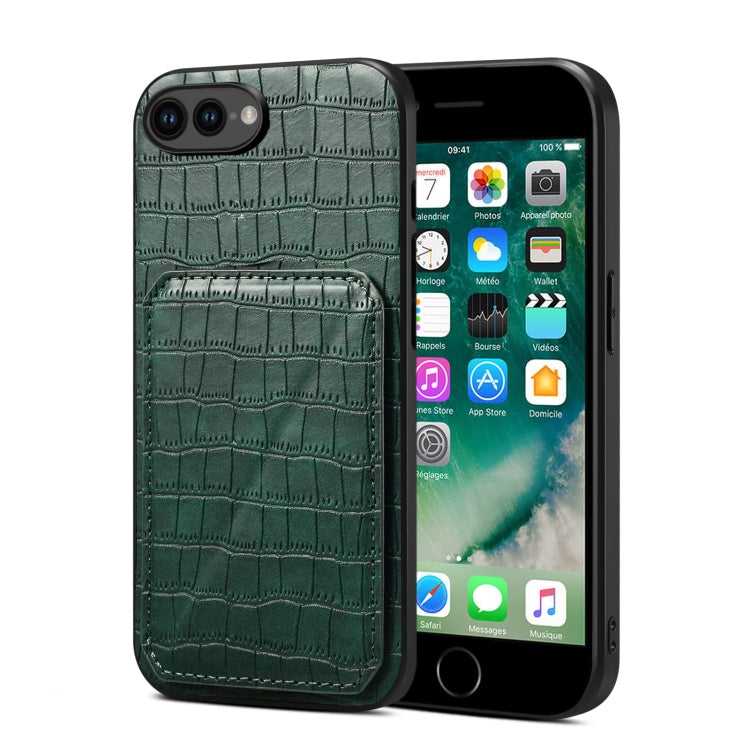 Funda Trasera para teléfono iPhone 8 Plus/7 Plus piel de cocodrilo de imitación con soporte (Verde)