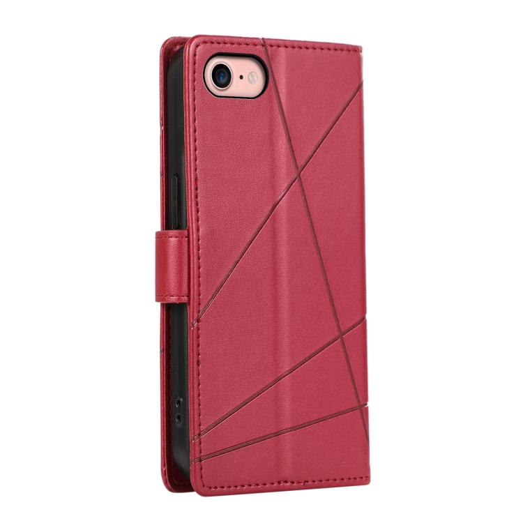 Funda para Teléfono iPhone SE 2022/SE 2020 Línea En Relieve Textura Cuero PU (Rojo)