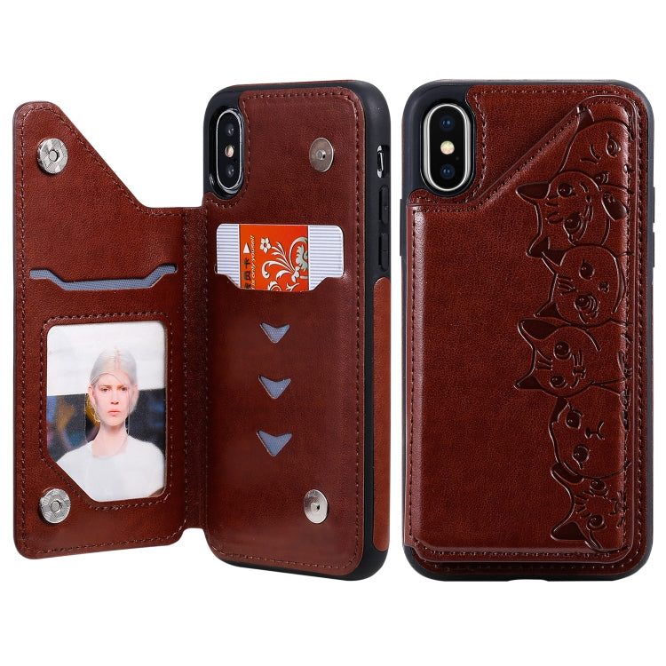 Estuche Protector Six Cats para iPhone X con Patrón de Relieve Soporte Ranuras y Marco de Fotos (Marrón)