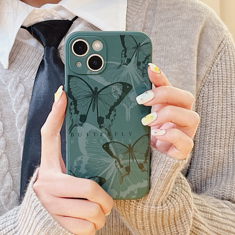 Caja del Teléfono TPU Magic para iPhone X Xs con Patrón Lateral Mariposas Verdes