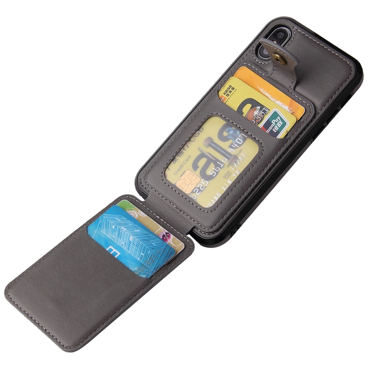 Estuche para teléfono iPhone X / Xs con billetera de cuero de piel suave (Gris)