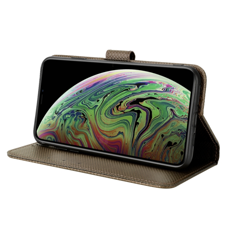 Funda de Teléfono iPhone X Xs Cuero Textura de Diamante (Marrón)