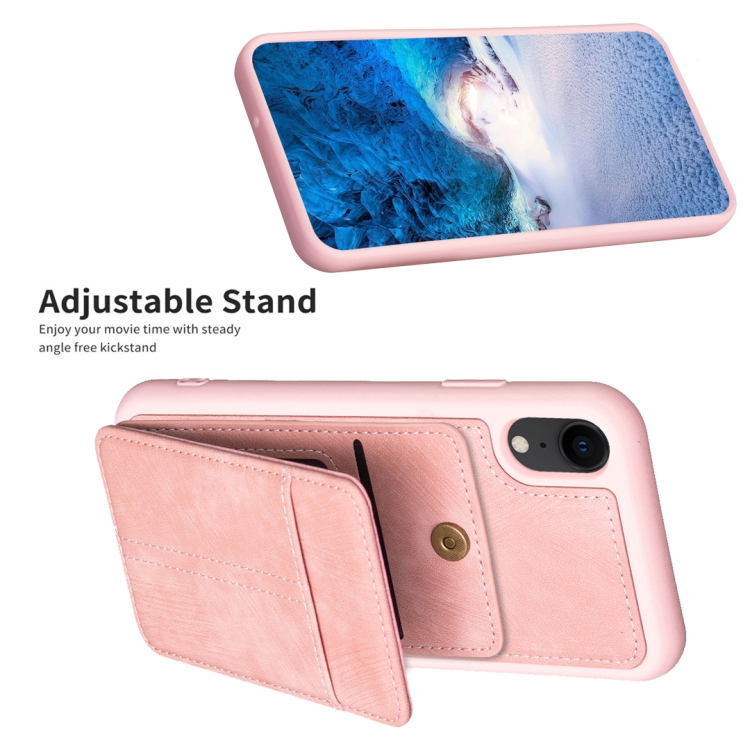 Estuche para Teléfono Bf28 para iPhone Xr con Bolsa para Tarjeta Esmerilada y Soporte (Rosa)