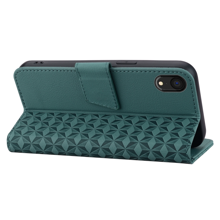 Funda de Cuero para iPhone Xr Business Diamond Buckle con Cordón (Verde)