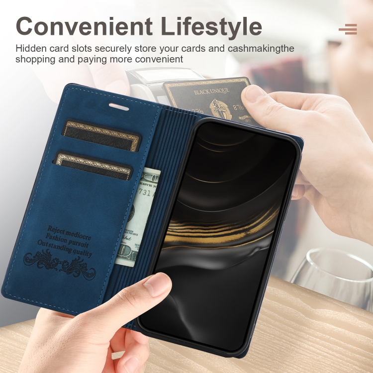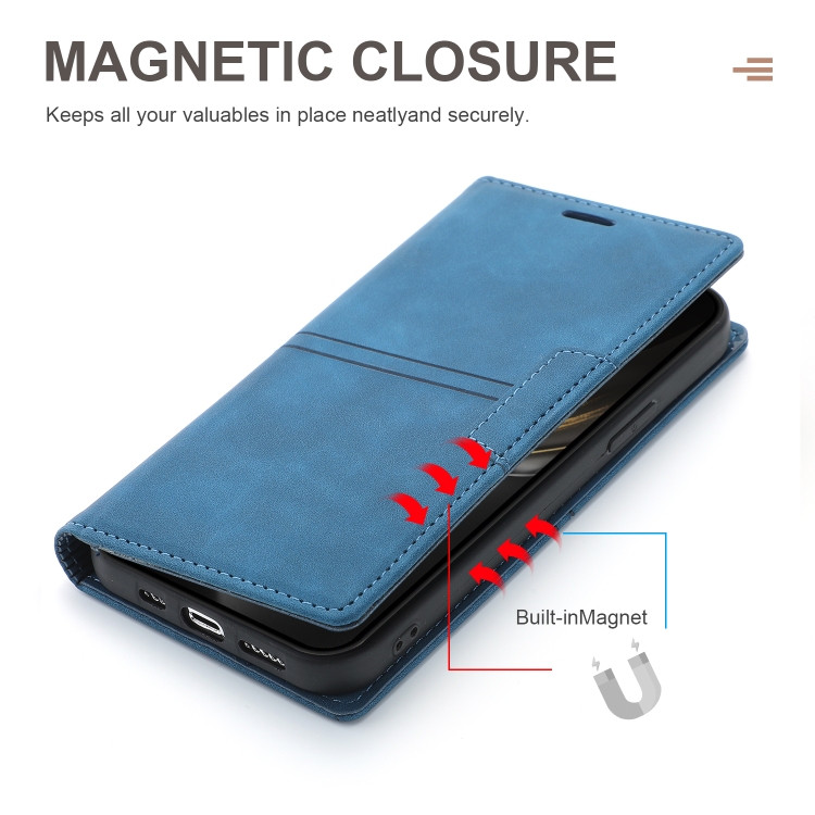 Funda para iPhone Xr Dream Magnetic Suction de Cuero PU con Tapa Horizontal, Soporte, Ranura para Tarjeta y Billetera (Azul)