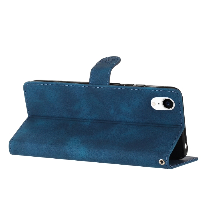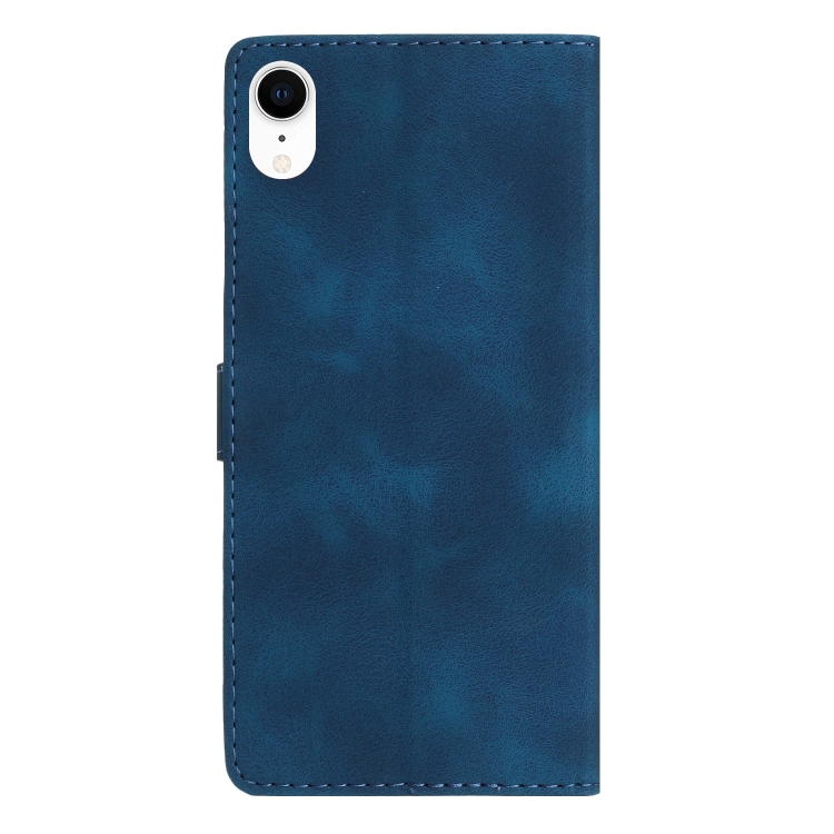 Funda de Teléfono iPhone Xr Cuero Estampado Flores en Relieve (Azul)