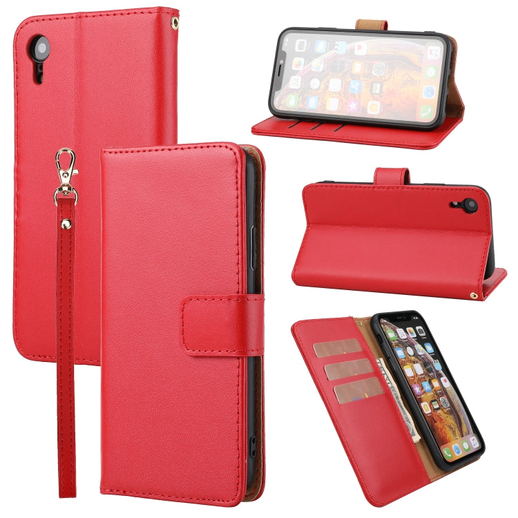 Funda de Teléfono iPhone Xr Cuero de Vaca Tejido Liso (Rojo)