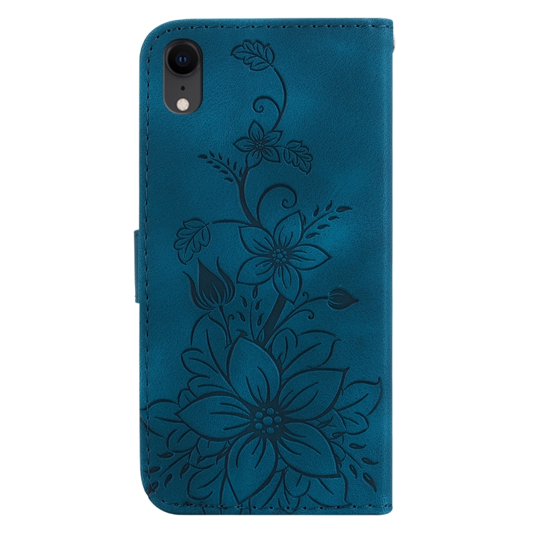 Estuche para Teléfono iPhone Xr Lily Cuero en Relieve (Azul Oscuro)
