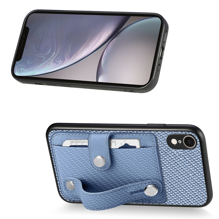 Funda para iPhone Xr Muñequera Kickstand Tarjeta Monedero Contraportada con Herramienta Cuchillo (Azul)