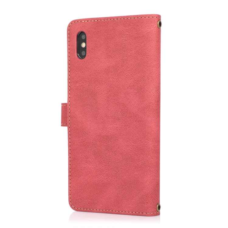 Funda para iPhone Xr PU + TPU Cuero con Tapa Horizontal Soporte y Ranura para Tarjeta y Billetera (Rojo Vino)