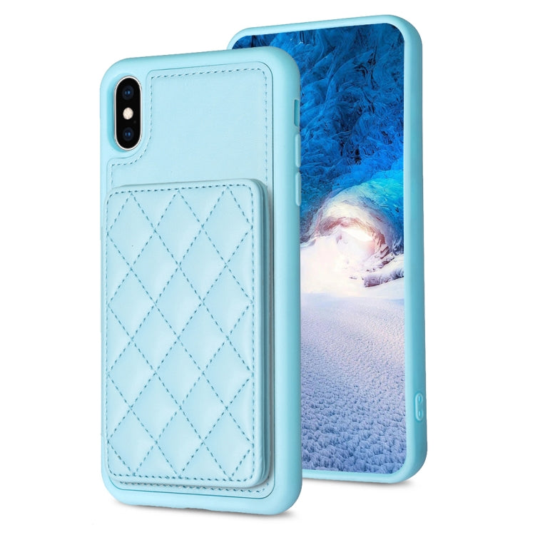 Funda para iPhone Xs Max BF25 Square Plaid Card Bag Holder Phone Case (Azul)