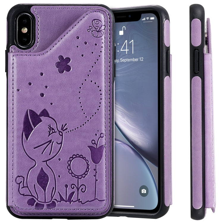 Estuche protector para iPhone Xs Max Cat Bee relieve patrón a prueba de golpes con ranuras para tarjetas y marco de fotos (Púrpura)
