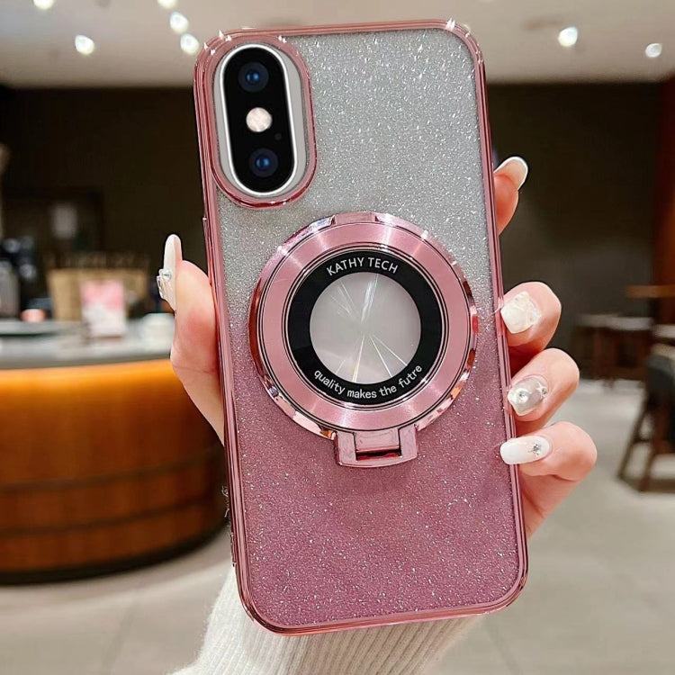 Estuche para Teléfono iPhone Xs Max Magsafe con Soporte Galvanizado y Brillo Degradado (Rosa)