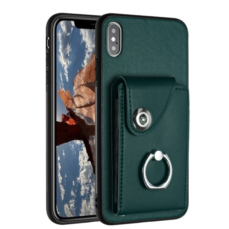 Funda para Teléfono iPhone Xs Max con Soporte para Anillo y Bolsa para Tarjeta de Órgano (Verde)