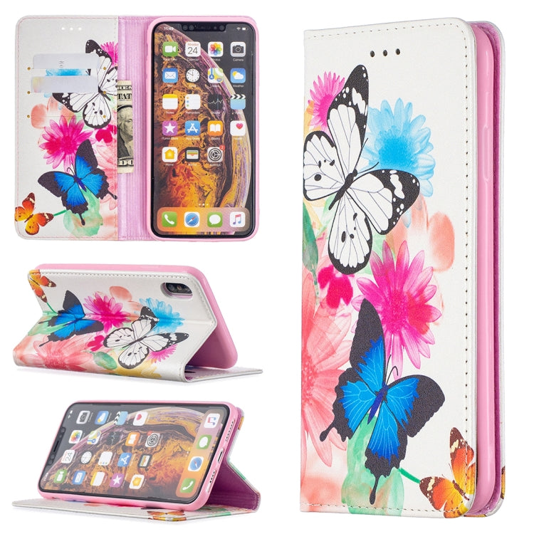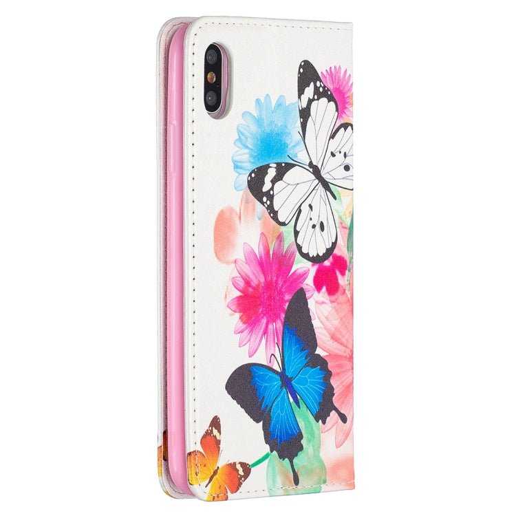 Estuche de Cuero PU para iPhone Xs Max con Tapa Magnética Horizontal Soporte Ranuras para Tarjetas Billetera (Dos Mariposas)