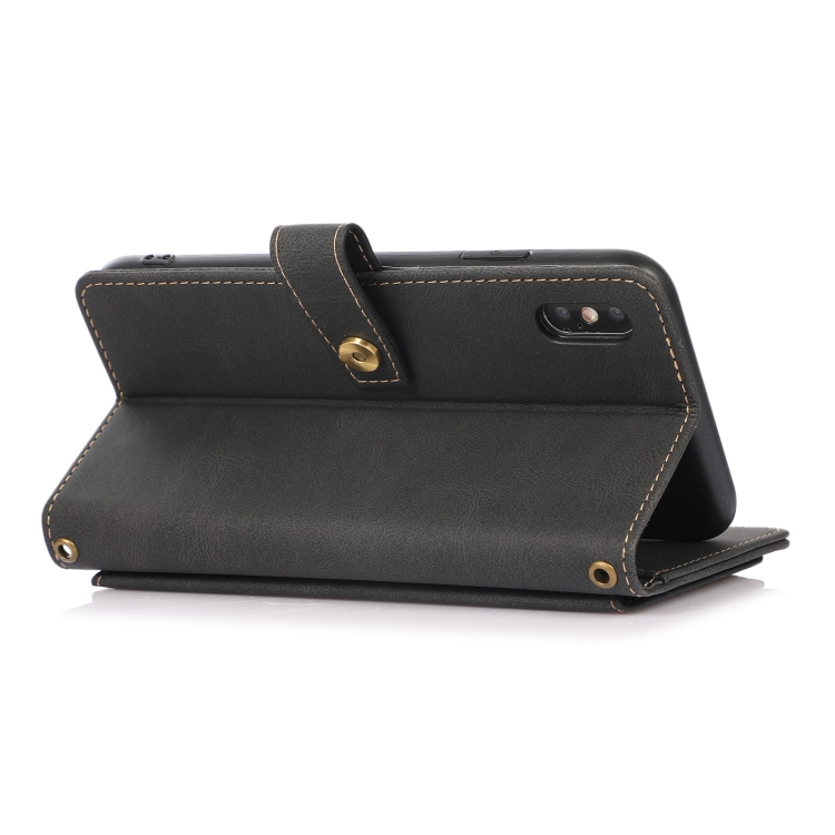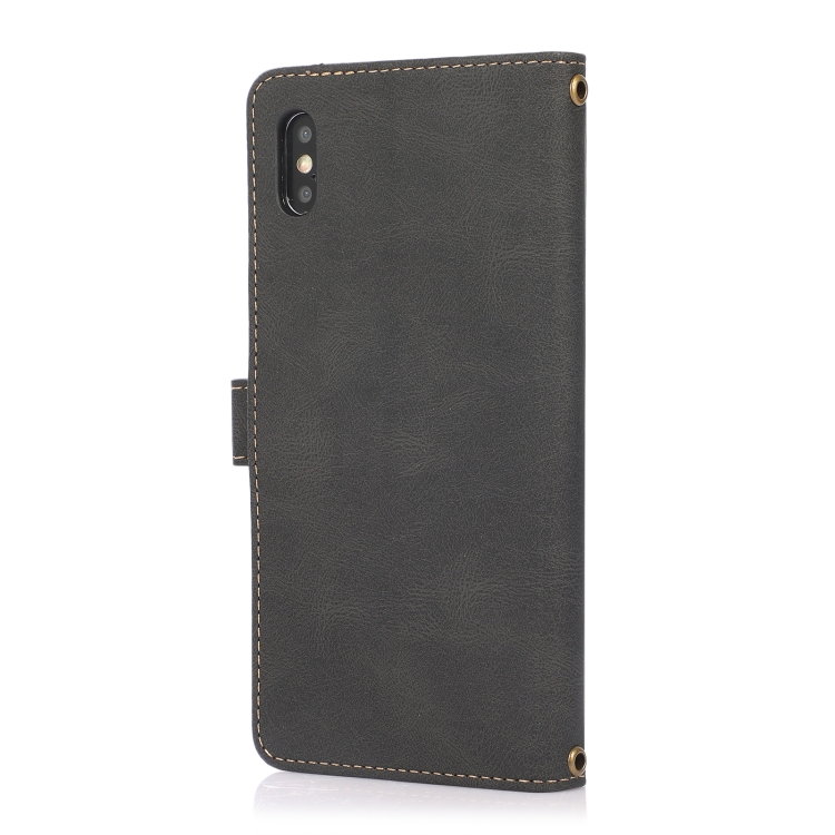 Funda para iPhone Xs Max PU + TPU Cuero con Tapa Horizontal, Soporte, Ranura para Tarjeta, Billetera y Cordón (Negro)