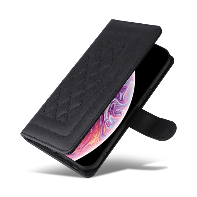 Funda para iPhone Xs / X Cuero con Tapa Diamond Lattice (Negro)