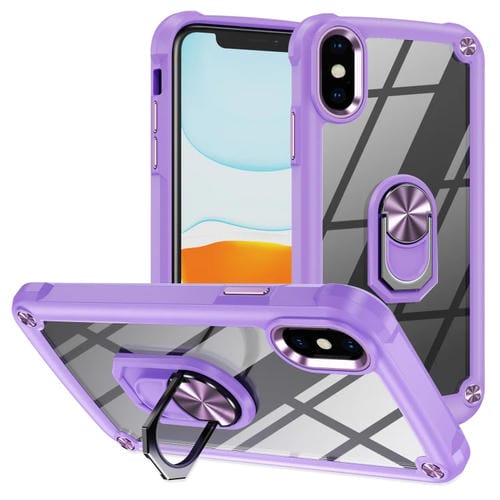 Estuche para Teléfono iPhone Xs / X TPU + PC con Protección de Lente y Soporte para Anillo (Púrpura)