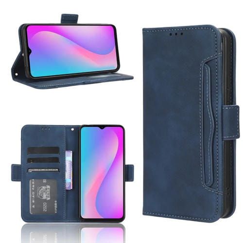Funda de Cuero para Itel A60 con Ranuras para Tarjetas y Textura Skin Feel Calf (Azul)