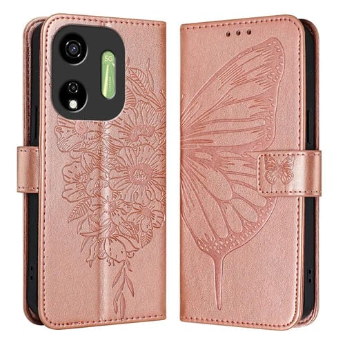 Funda de Cuero para Itel P55 5G con Mariposa en Relieve (Oro Rosa)