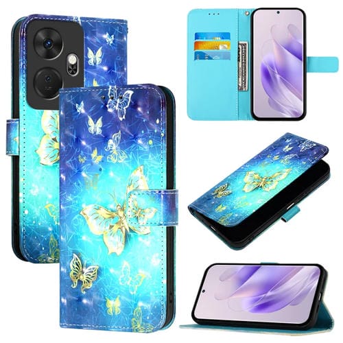 Funda de Cuero para Itel P55 con Tapa Horizontal y Pintura 3D (Mariposa Dorada)