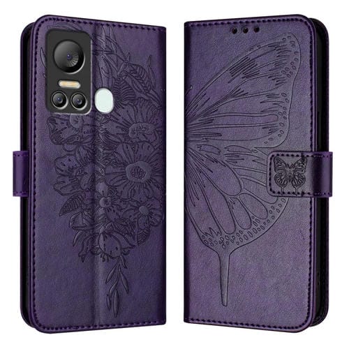 Funda para Teléfono Itel S18 Vision 5 de Cuero con Mariposa en Relieve (Púrpura Oscuro)