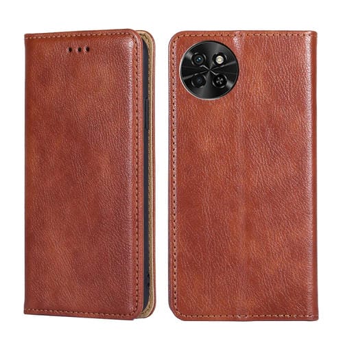 Estuche para Itel S23 4G de Cuero Magnético con Aceite Brillante (Marrón)