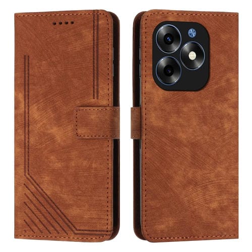 Funda de Cuero para Itel S23 con Skin Feel, Patrón de Rayas y Cordón (Marrón)