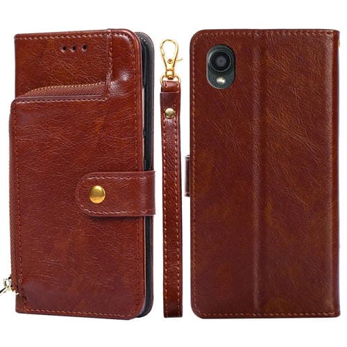 Funda de Cuero con Cremallera para Kyocera Digno Bx2 Digno Sx2 A101Kc (Marrón)