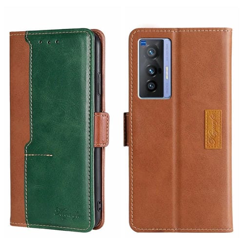 Para la Caja de Teléfono de Cuero de Hebilla Lateral de Color Vivo X70 de Contraste (Marrón Claro + Verde)