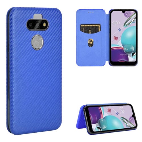 Carcasa para LG K31 Cuero con Tapa Magnética Horizontal Textura Fibra de Carbono TPU + PC + PU con Ranura para Tarjeta (Azul)