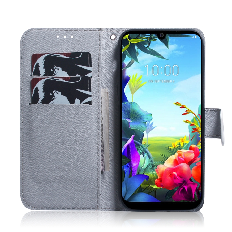 Estuche de Cuero Abatible Horizontal para LG K40S con Atracción Magnética, Soporte, Ranura para Tarjeta y Billetera (León)