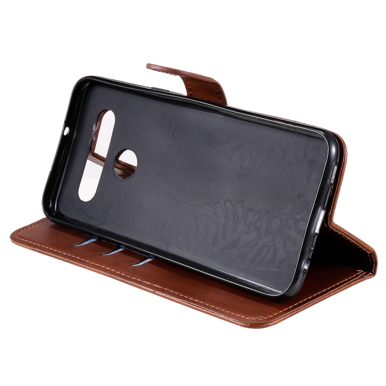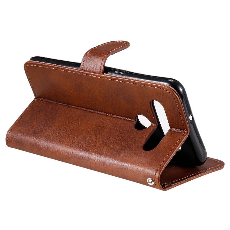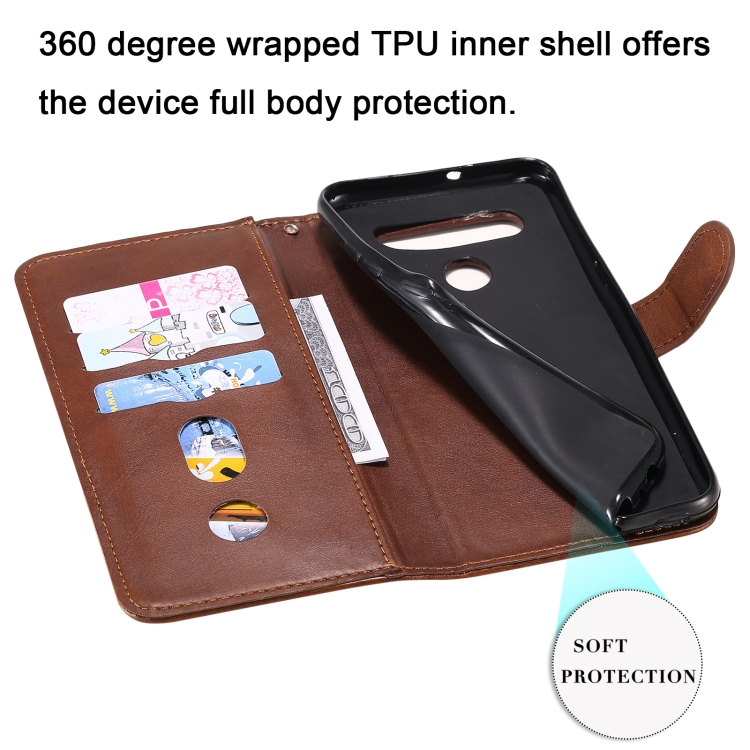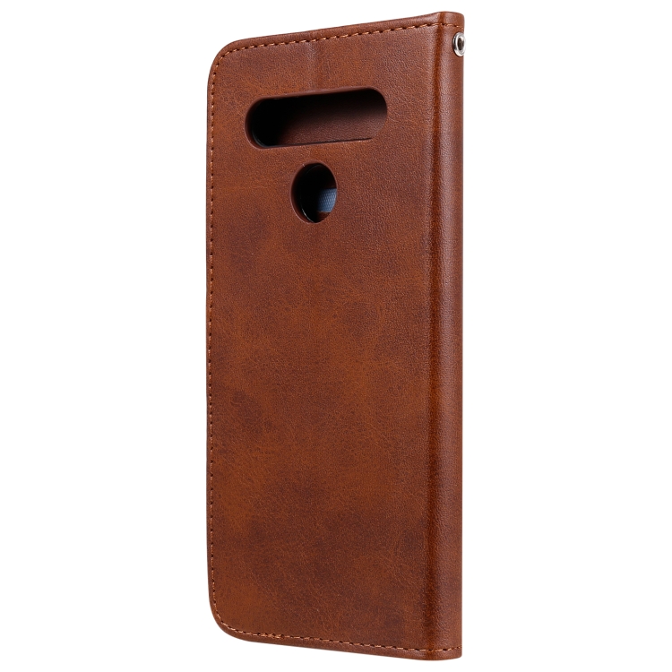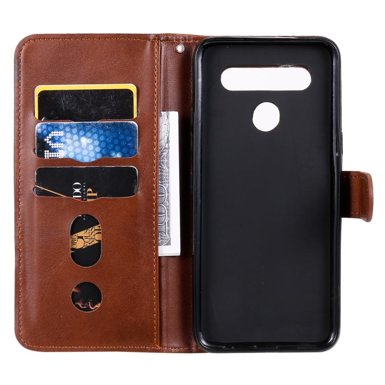 Estuche de Cuero para LG K41S K51S con Tapa Horizontal, Cremallera, Soporte y Ranuras para Tarjetas (Marrón)