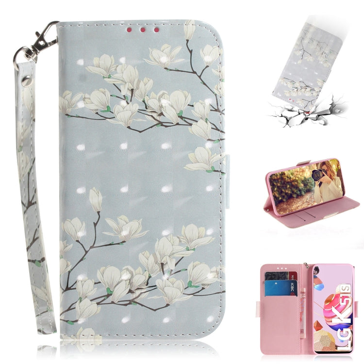 Funda de Cuero Abatible Horizontal para LG K41S K51S con Dibujo 3D Soporte Ranuras Tarjetas Billetera Cordón (Magnolia)