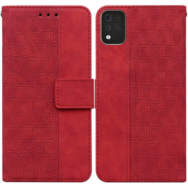 Funda para LG K42 Caja de Cuero en Relieve Geométrico (Rojo)