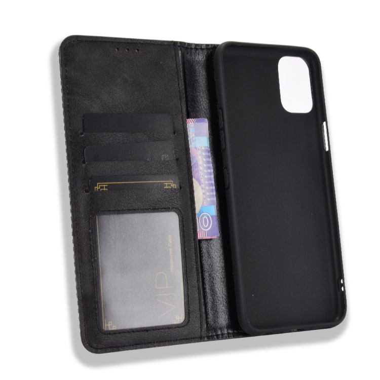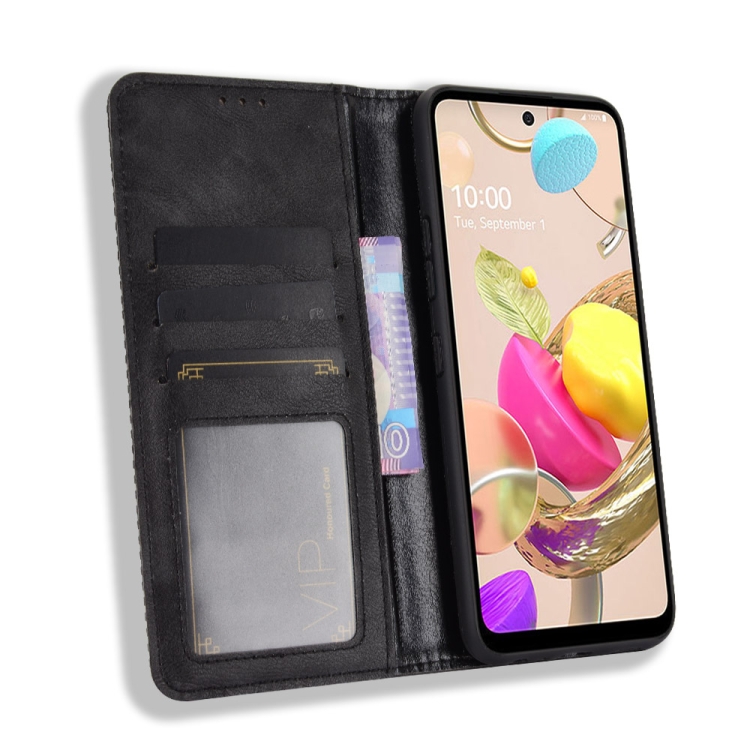 Funda de Cuero para LG K42 con Hebilla Magnética, Tapa Horizontal, Soporte, Ranuras para Tarjetas y Marco de Fotos (Negro)