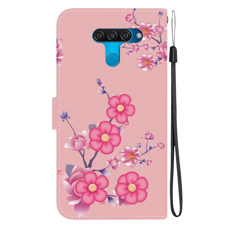 Funda para LG K50 / Q60 de Cuero con Dibujo Coloreado y Textura de Cristal (Flores de Cerezo)