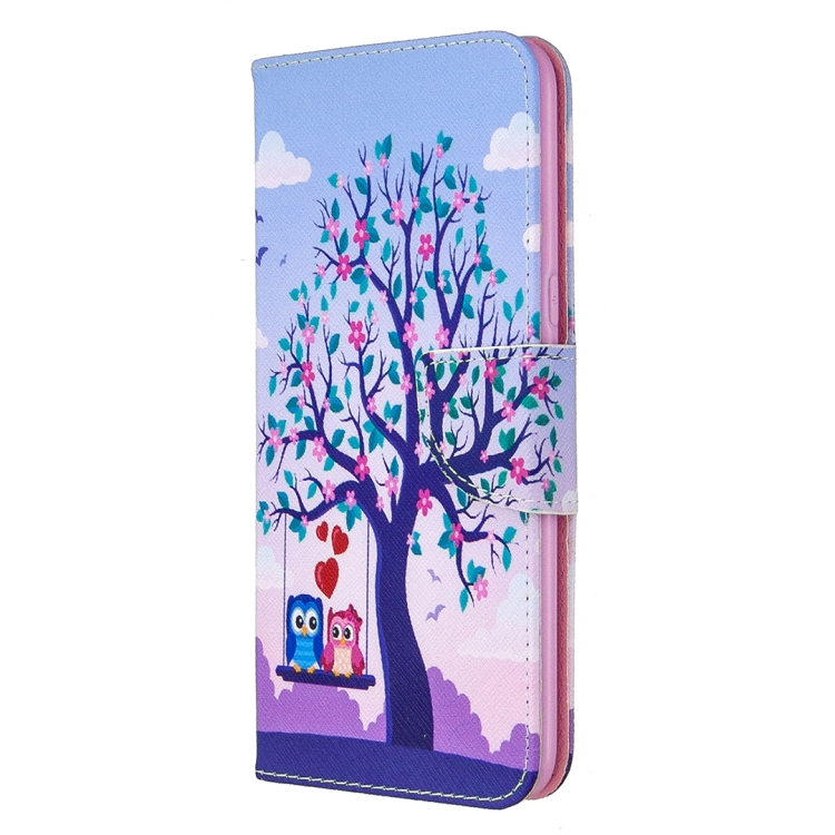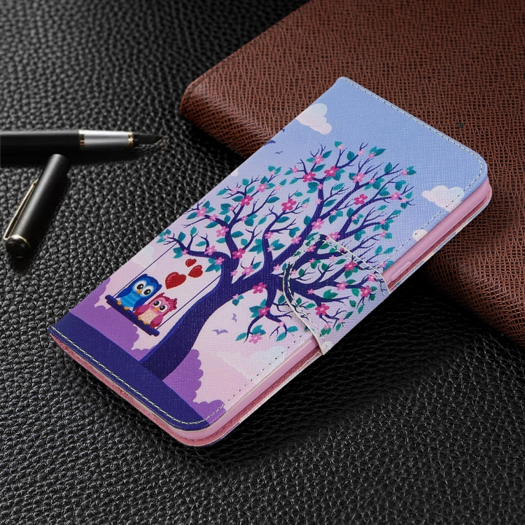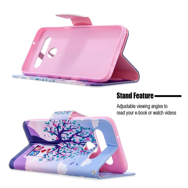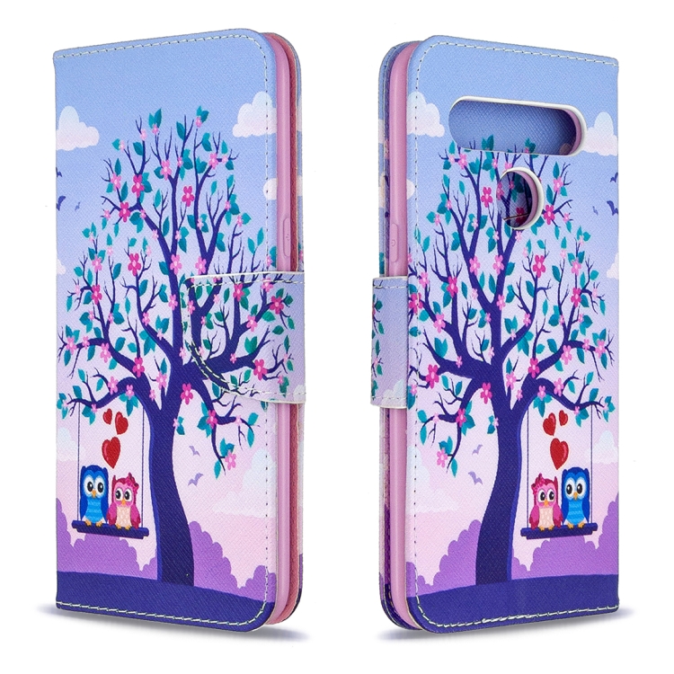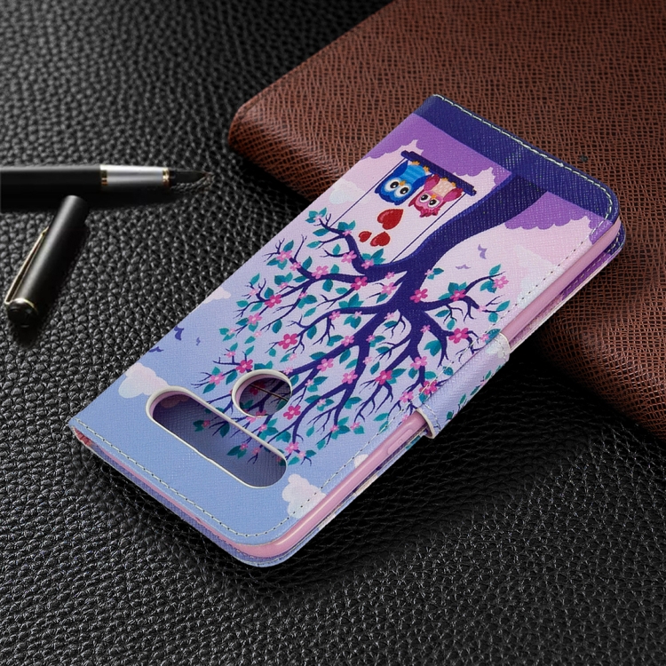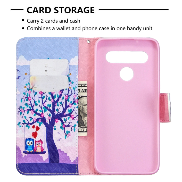 Funda de Cuero para LG K61 con Patrón de Dibujo Coloreado, Tapa Horizontal, Soporte y Ranuras para Tarjetas (Búho)