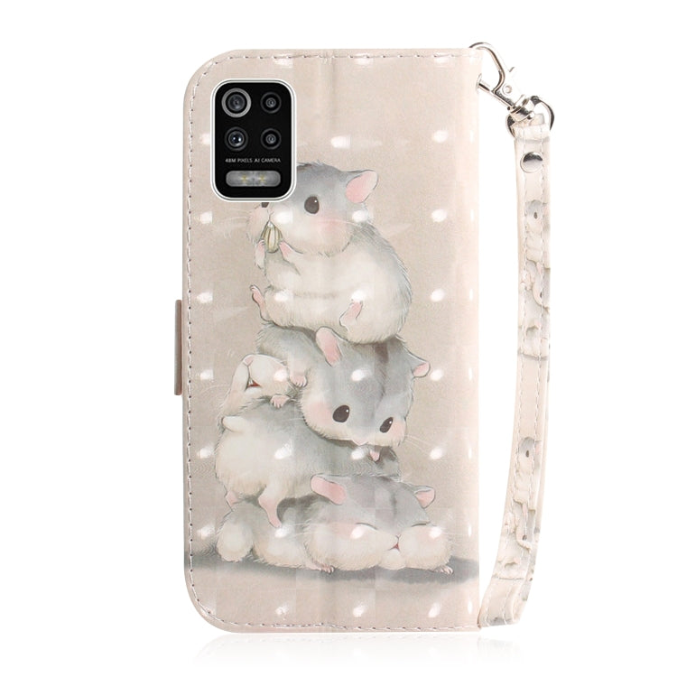 Funda de Cuero Abatible Horizontal para LG K62 K52 Q52 con Dibujo 3D Soporte Ranuras Tarjetas Billetera Cordón (Ardillas)