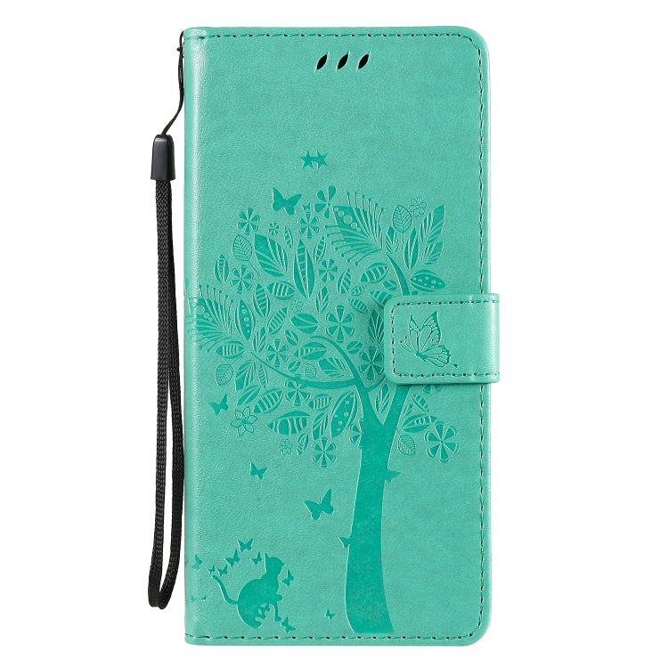 Funda de Cuero para LG Stylo 6 con Tapa Horizontal, Patrón Árbol y Gato, Soporte, Ranuras y Cordón (Verde)