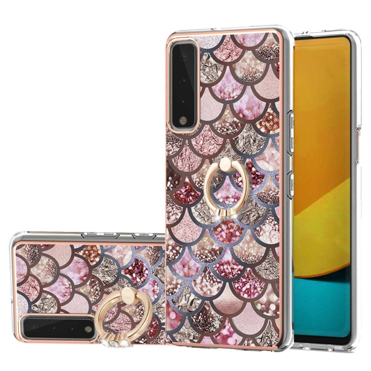 Funda TPU LG Stylo 7 5G con Patrón Galvanoplastia, Soporte Anillo y Protección (Escalas Rosadas)
