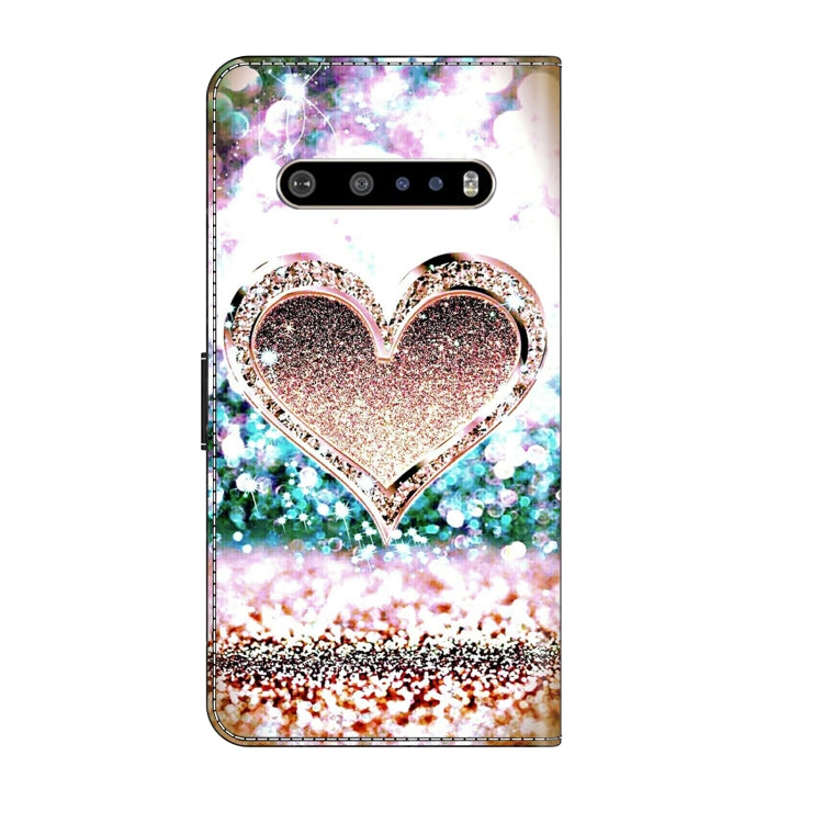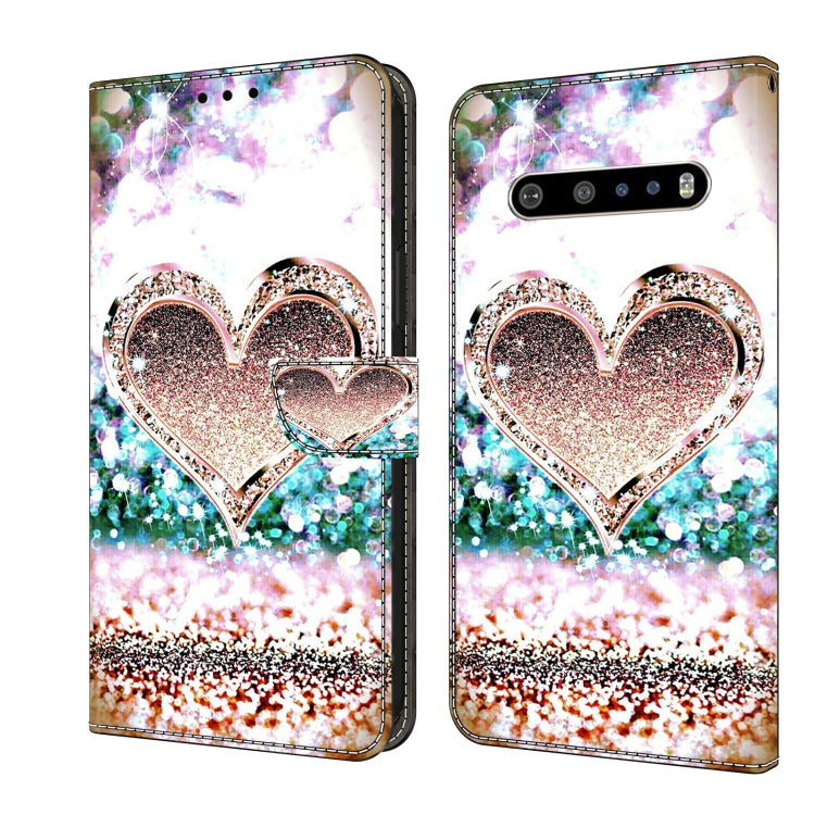 Funda Protectora de Cuero para LG V60 Thinq 5G Crystal 3D a Prueba de Golpes (Corazón de Diamante Rosa)