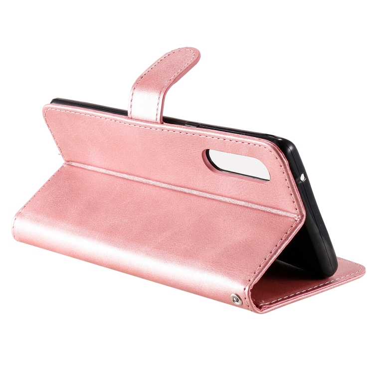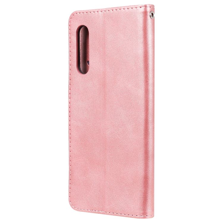 Estuche de Cuero para LG Velvet con Cremallera, Soporte, Ranuras y Billetera (Oro Rosa)