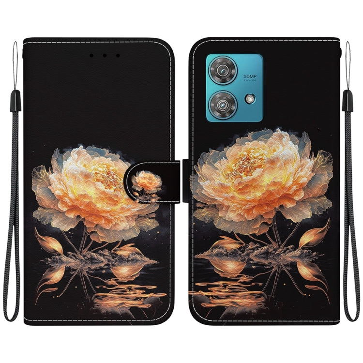Funda de Cuero para Motorola Edge 40 Neo con Dibujo Coloreado Crystal Texture (Peonía Dorada)